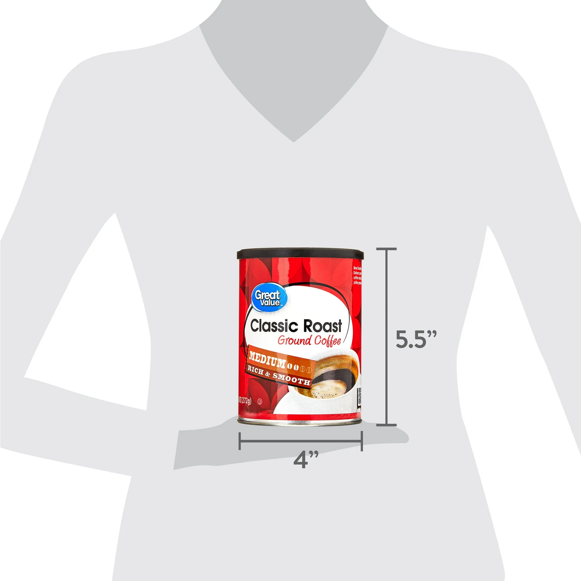 - Great Value Classic Medium Roast Naturally Caffeinated Ground Coffee, 9.6 oz