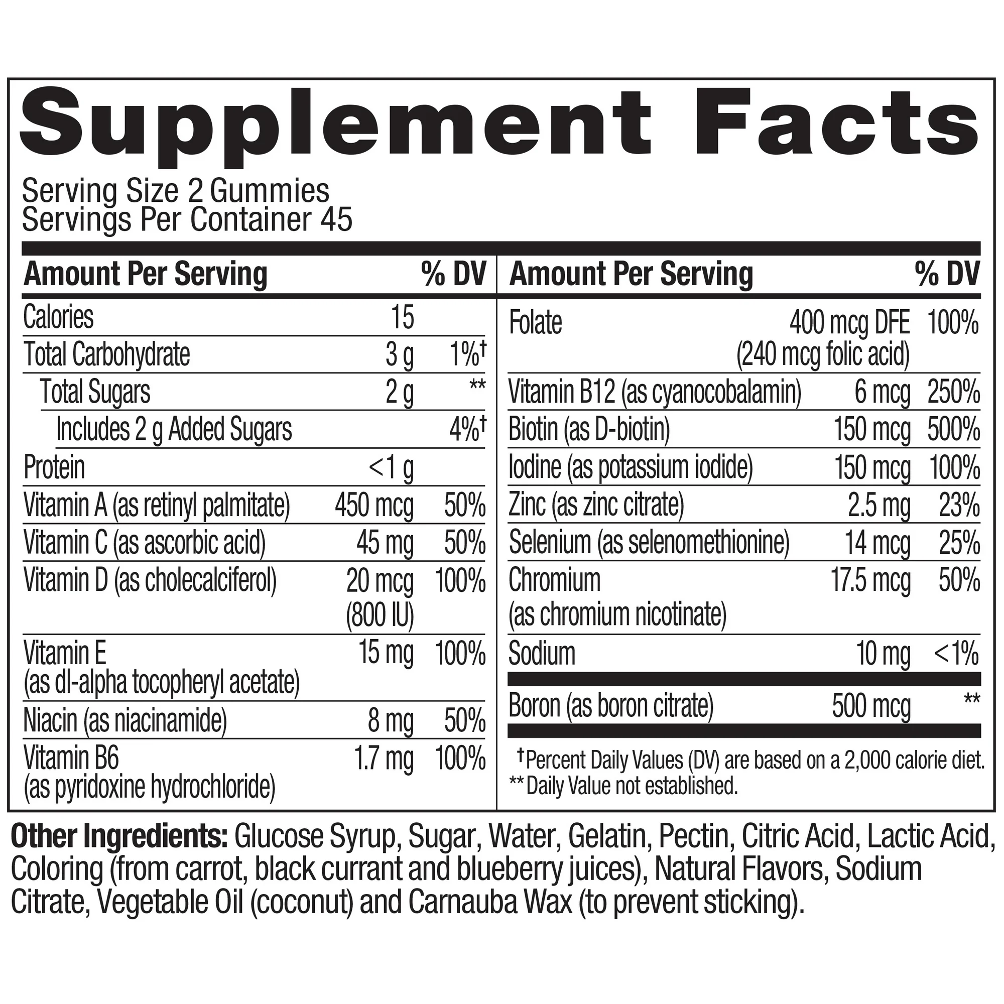 - Adults, take two gummies daily, chew thoroughly before swallowing